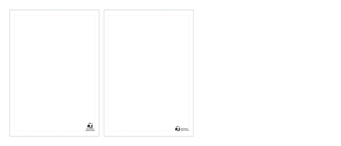 The Tasmanian Government logo should be placed in the bottom right corner. There are no specific measurements to the left and the bottom of the document. Exclusion zone applies as minimum. It is recommended to place the logo in line with the document margins.
