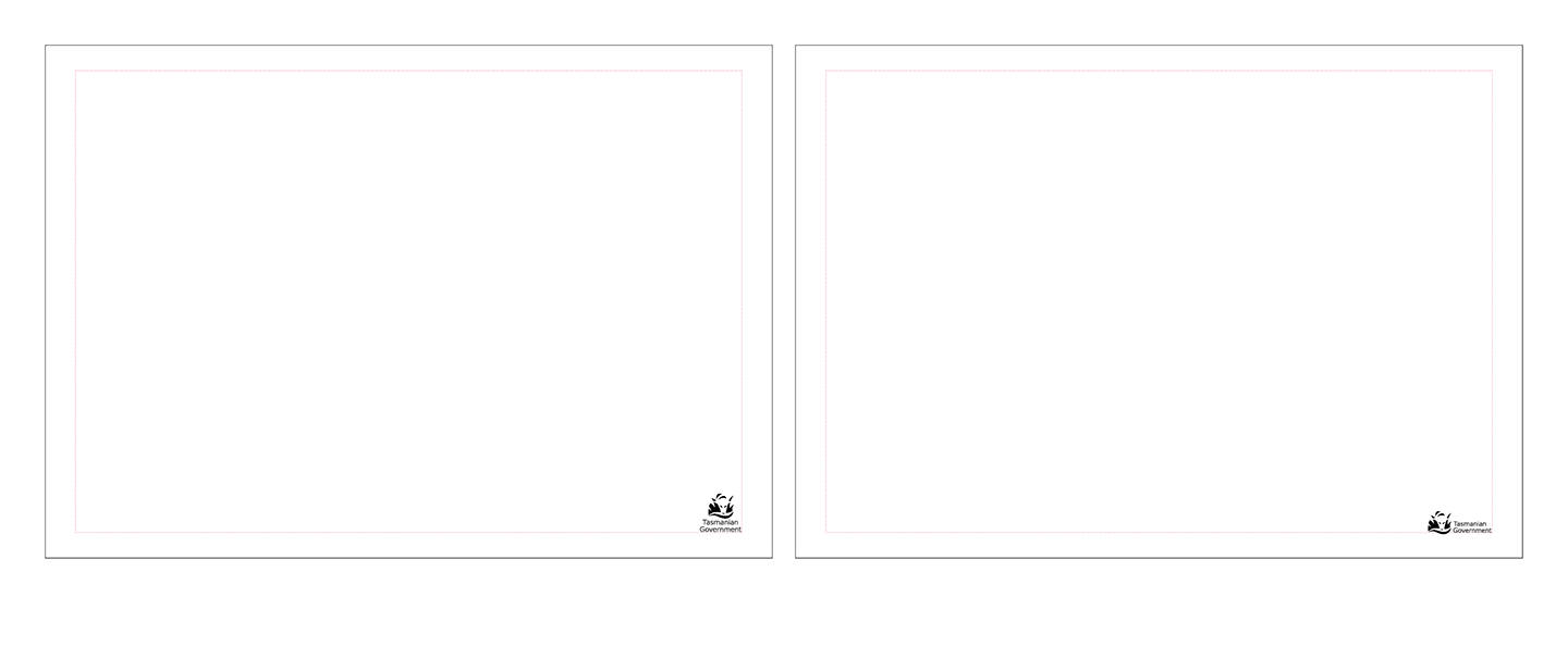 - ‘Initiative of the Tasmanian Government’ must be the only logo to appear in the bottom quarter of the design area.